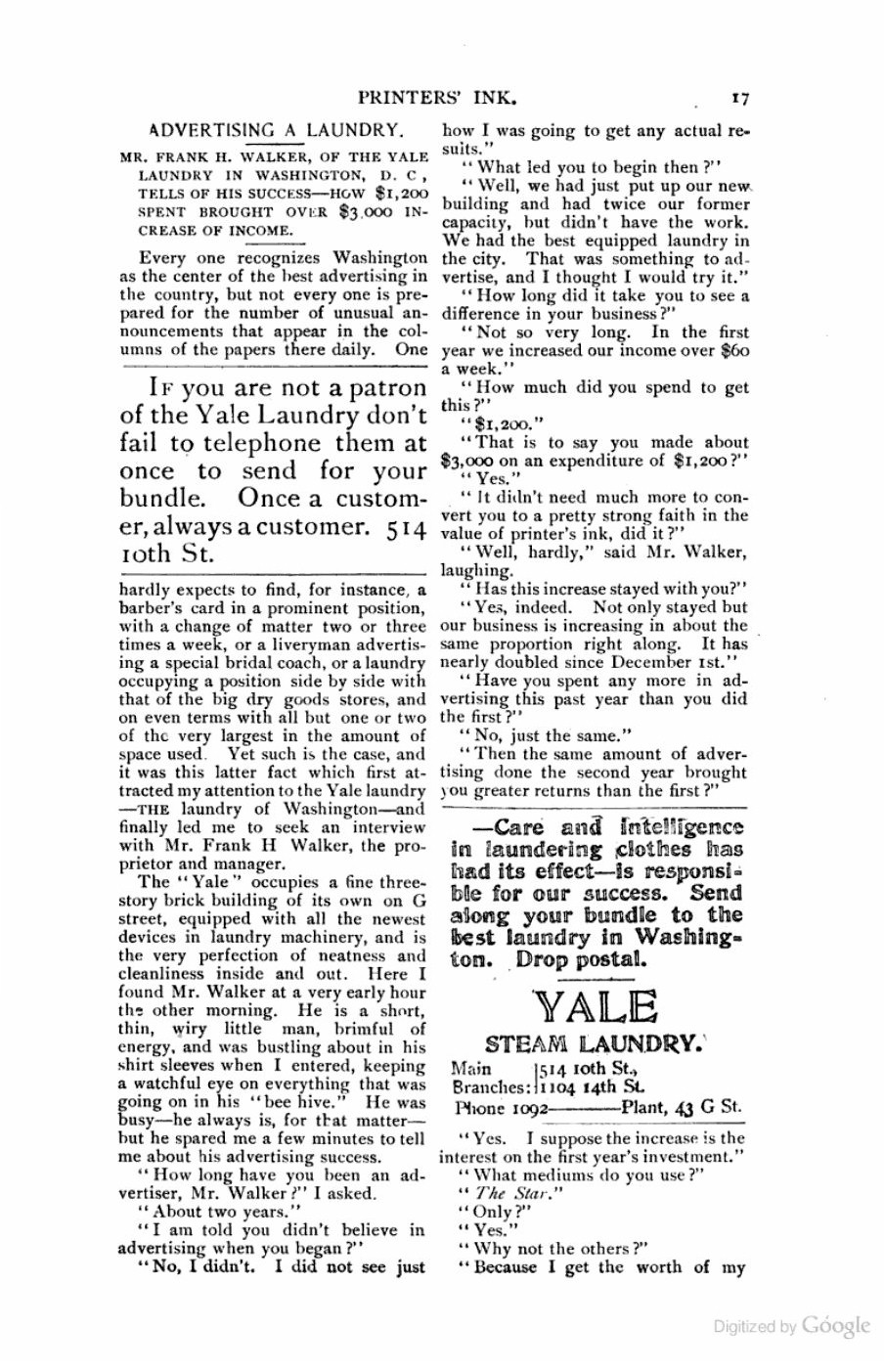 it became apparent, it very may not have. I learned there were Yale Laundries in New York City, Washington D.C., Denver, Portland Oregon...and maybe other cities...and They seem to have