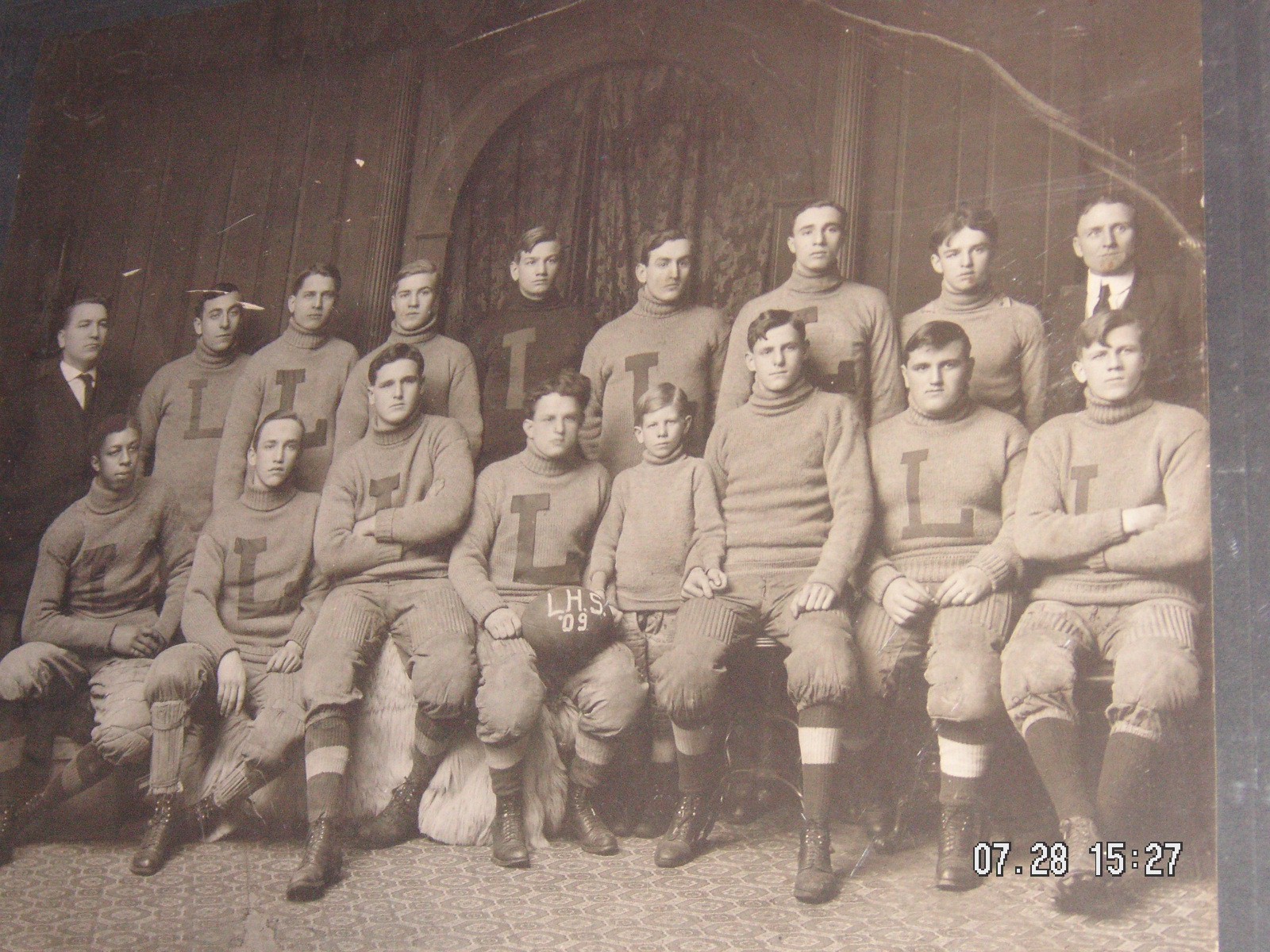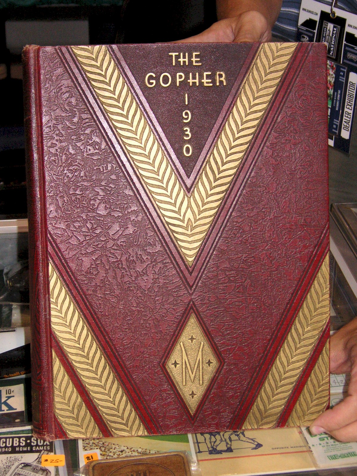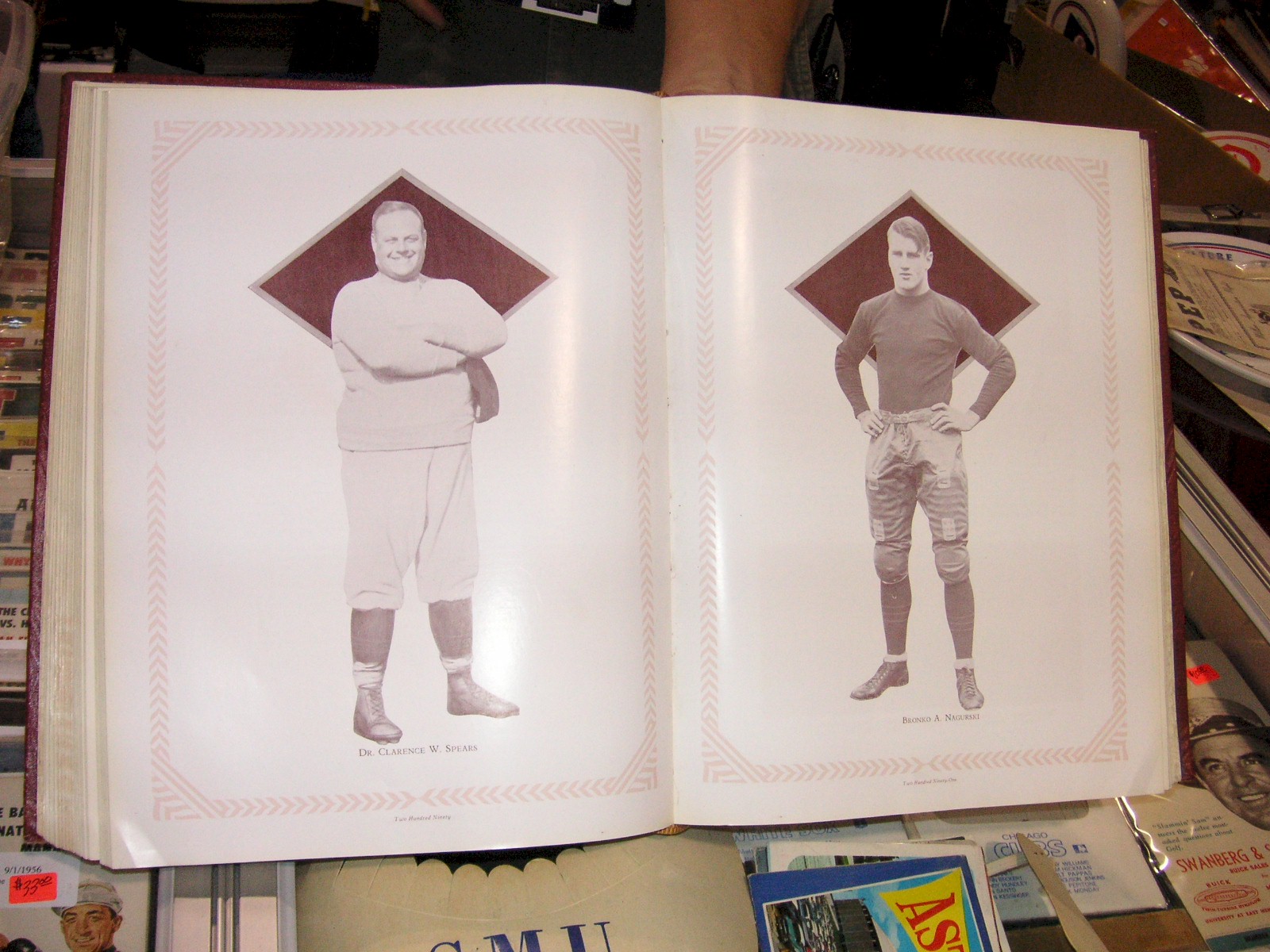 sheet music called “The Gridiron March Two Step”, that had a large illustration of a helmet-less football player running with a ball, printed in blue, 13 ½” tall by 10 ¼” wide, $35.00. Next Paul had a 1930