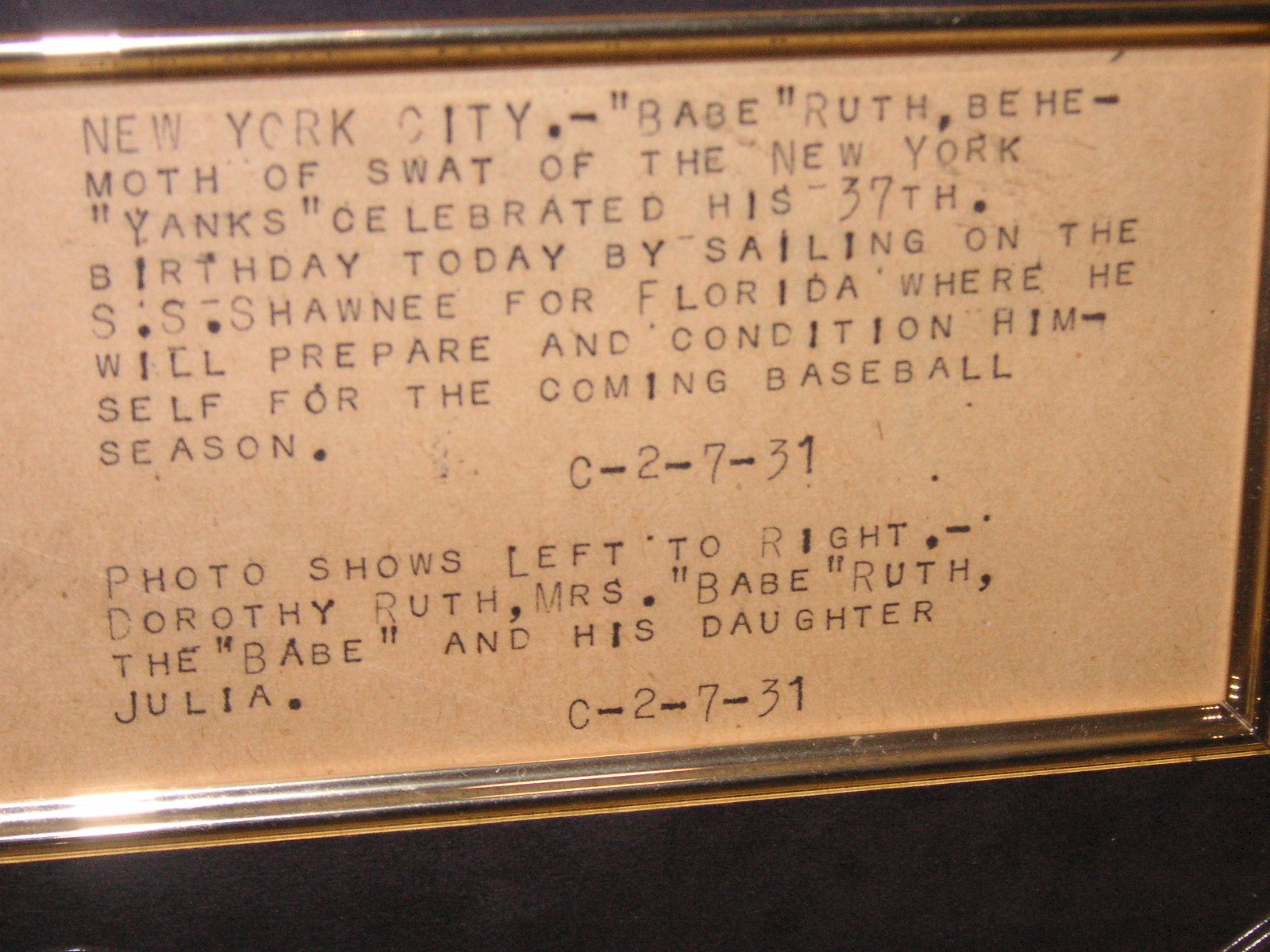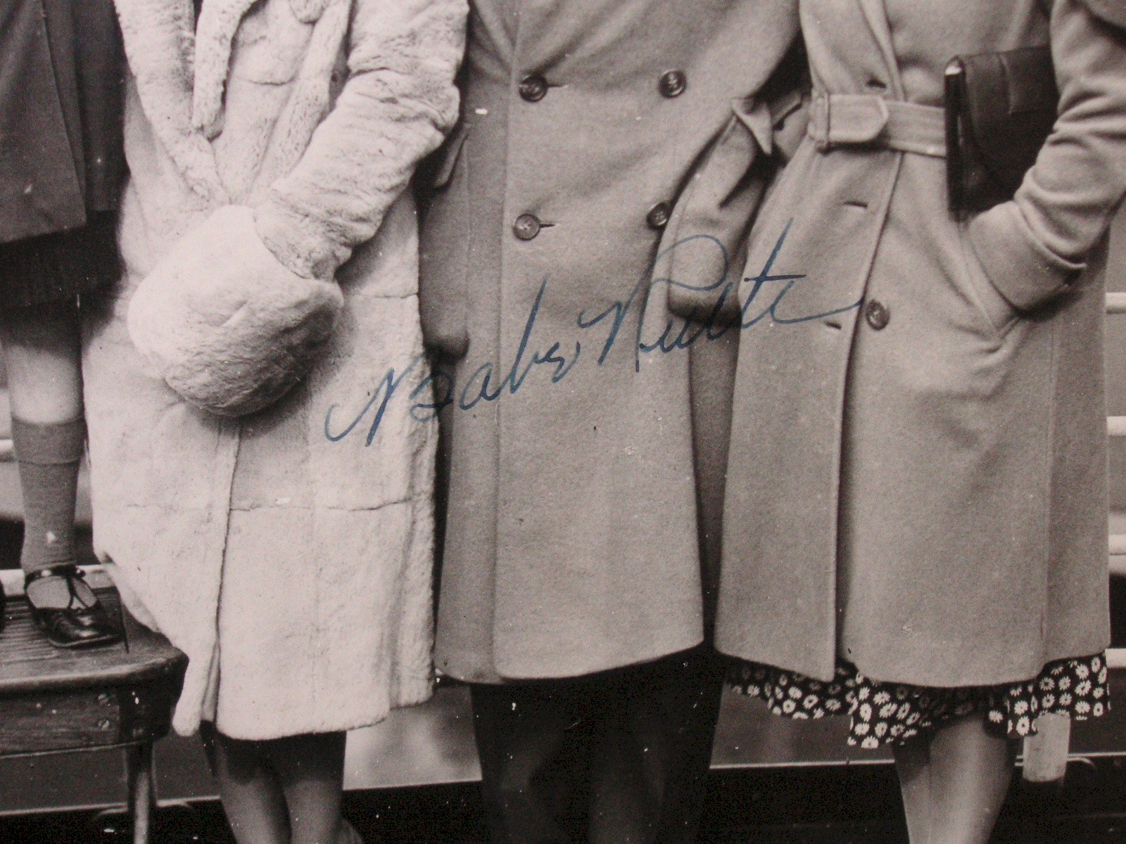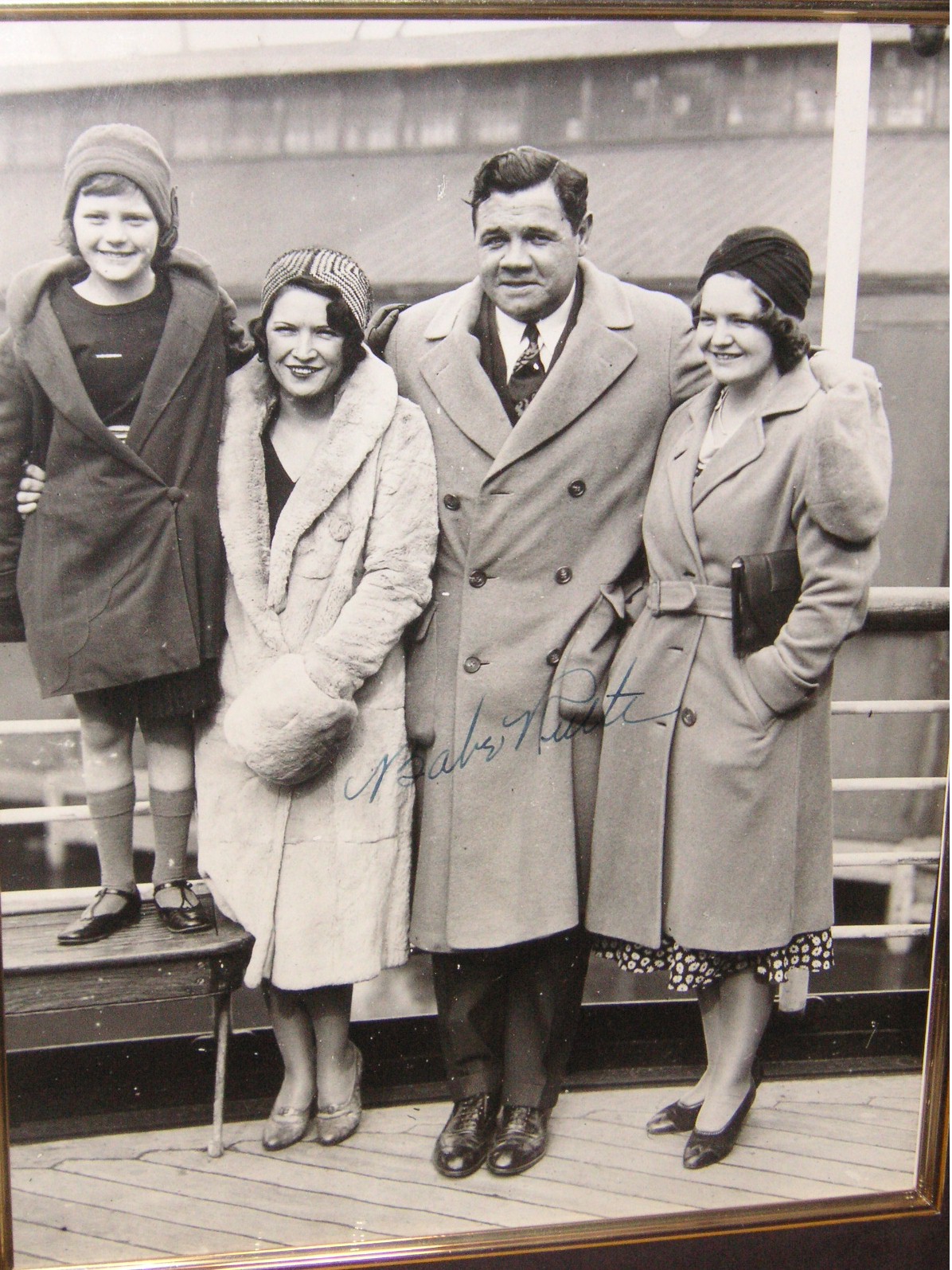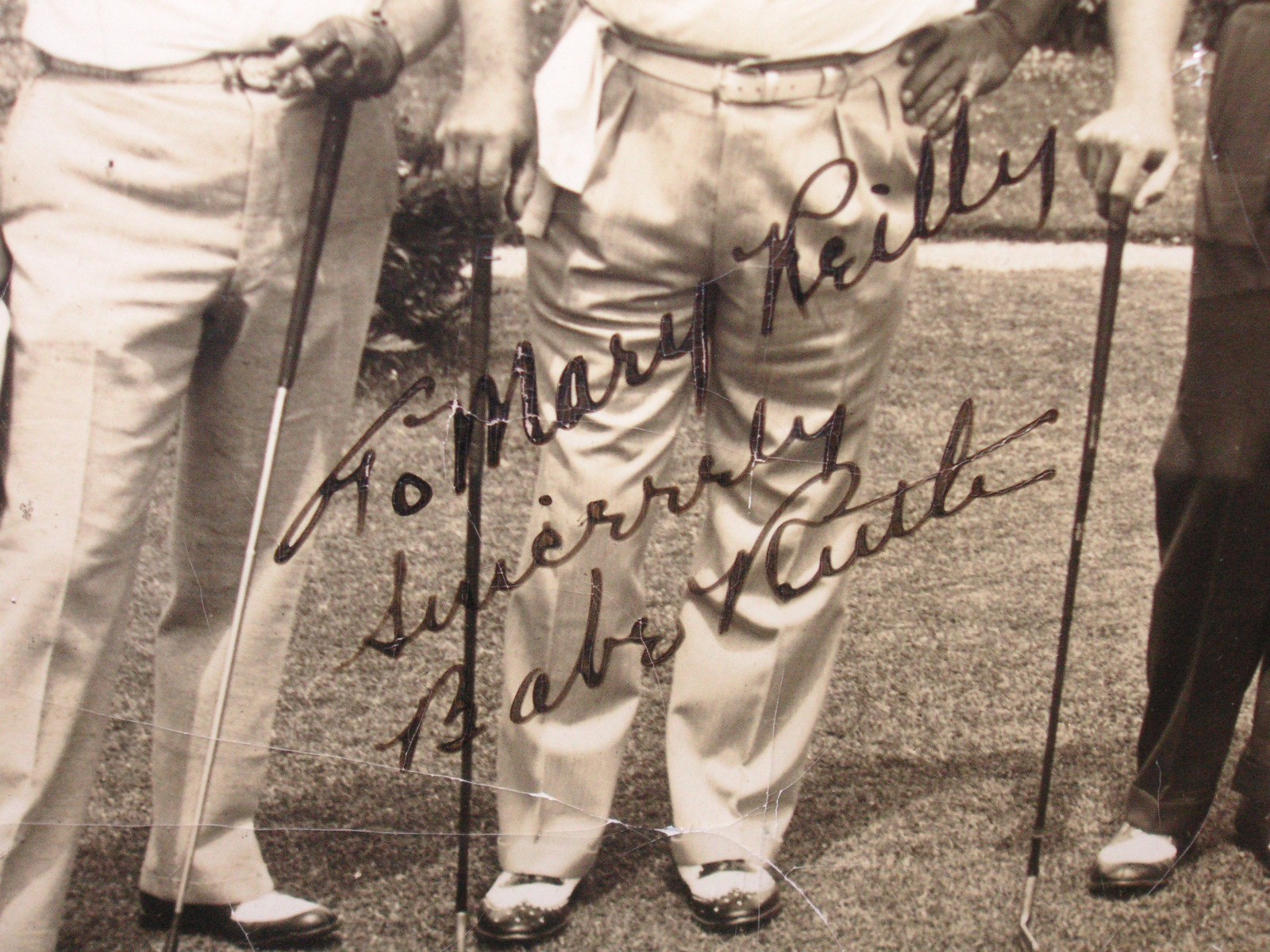 hand, wearing golf shoes, standing with four men, signed: To Mary Reilly sincerely Babe Ruth, 9 ½” wide by 7 ½” tall - inside mat, $6,295.00. The other one was a lot more interesting. It showed Ruth posing for a photo