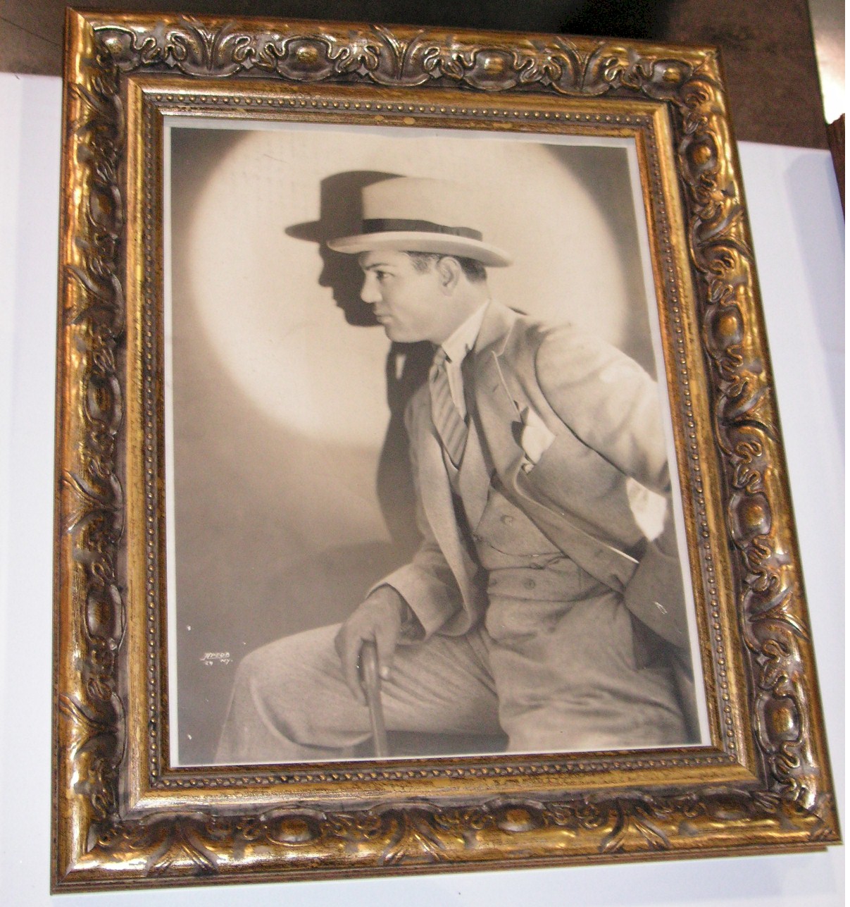 Tunney, 13” x 15”, $400.00. Next up was an unsigned photo of Dempsey in a suit and hat with a hand in his