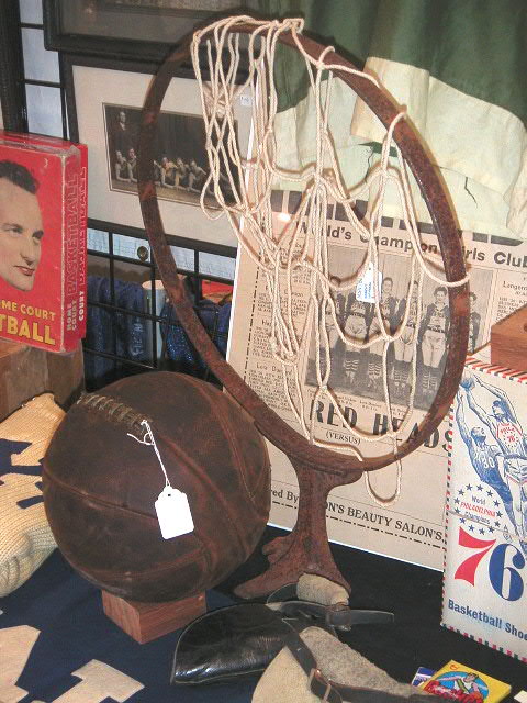 Reizes, from Mesa, AZ. Price: rim and net  $250.00, ball $250.00 . Hank was sharing a booth with John F. Parker of 99% Basketball from Chelsea, VT. Hank is an interesting person in that he specializes in vintage basketball material, and is now selling off his collection. Good to know specialists, had never met one for