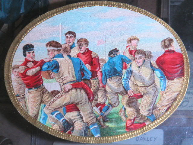 . This tin was my only purchase at the convention. My primary interest is American sports antiques. However, this tin made it to the gotta have it level, as it's the nicest sports tin I've ever seen. There's a little story to it. My friend John Buonaguidi had an example of this tin, that he'd gotten out of a Leland's auction for like $700.00-$800.00 .  Then it got stolen. He was sick about it. When I spotted it, Glenn was asking $450.00, but quoted me $400.00. I wanted it, but it was the same old story…if I found something later I couldn't live without, I didn't want to end up $400.00 short. Same old poker game. I offered $350.00, but Glenn wouldn't come off.  So I ended up pulling the trigger before somebody else got it. It was just too nice and rare to pass up I thought.