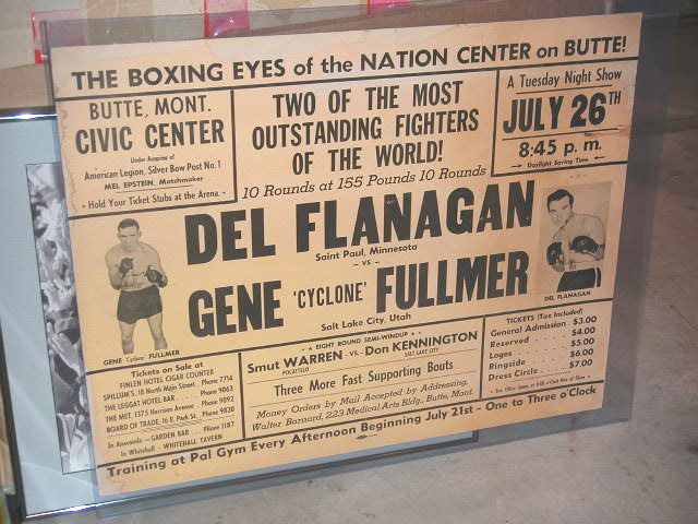 Next up, a  Gene Fullmer vs. Del Flanagan boxing site poster, 22" x 28", Price: $500.00