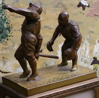 fantastic little 5 1/2" tall white metal baseball statue
