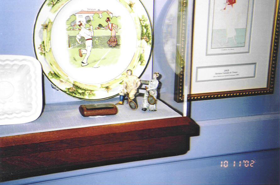 I once saw just the man of this, on eBay, tennis racquet in hand, and because I’d never seen the entire piece, didn’t know quite what to make of it. Thereafter my friend John Buonaguidi and his wife Debra were at the International Tennis Hall of Fame in Newport Rhode Island, where they happened to snap a photo of the one in the collection there. After seeing the photo I was able to place the piece I’d seen on