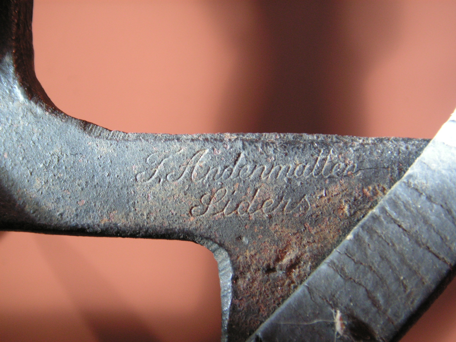 and hardly even knew what they were…I just sensed something about them and liked the way they looked…and hoped they weren’t for climbing telephone poles! I remember it was a cold day and I went and sat at a picnic tables by a food vendor to look them over. I got out my magnifying glass…I could make out the name F. Andenmatten with the word Siders underneath…Wonder of technology, I used my smart phone and googled it…