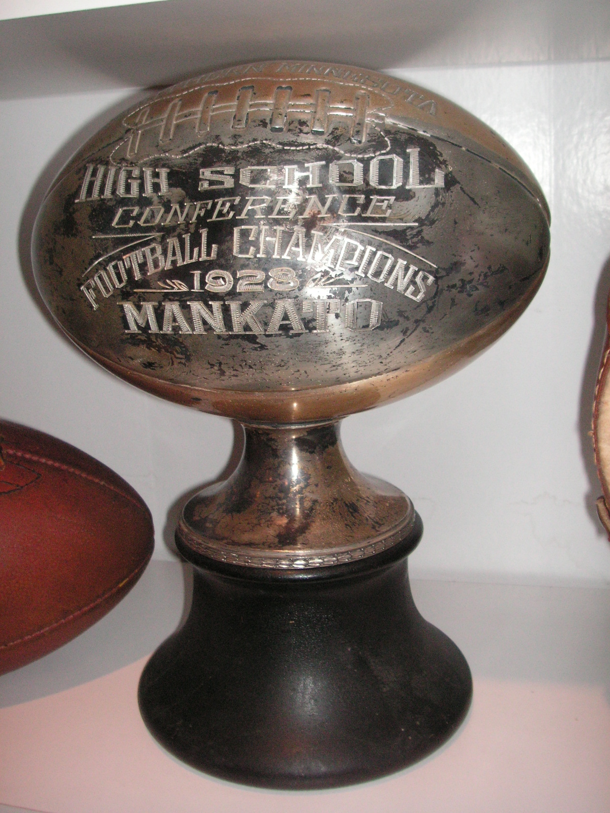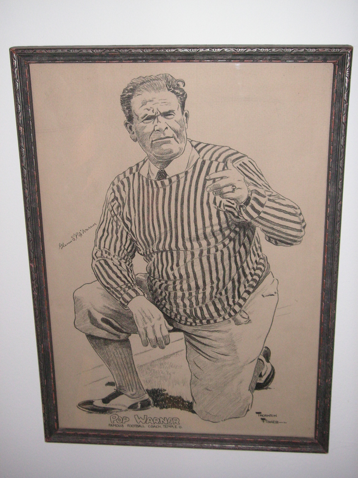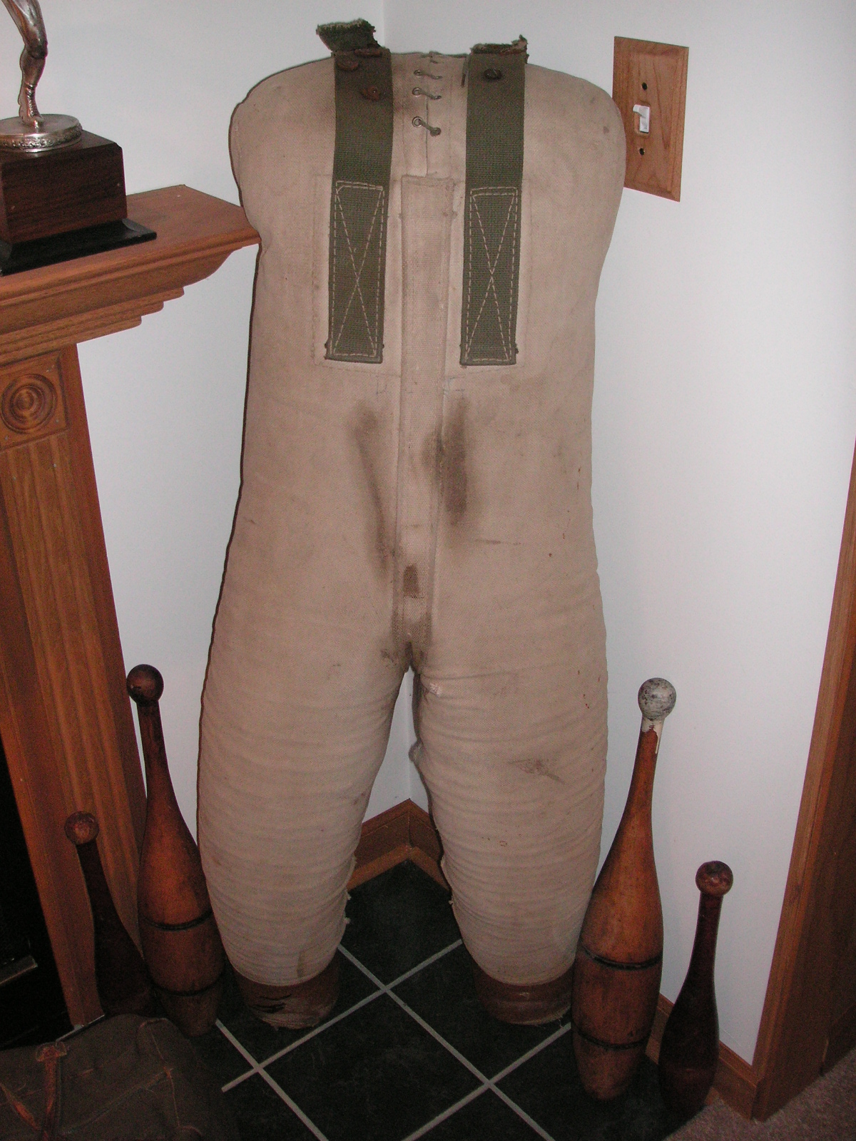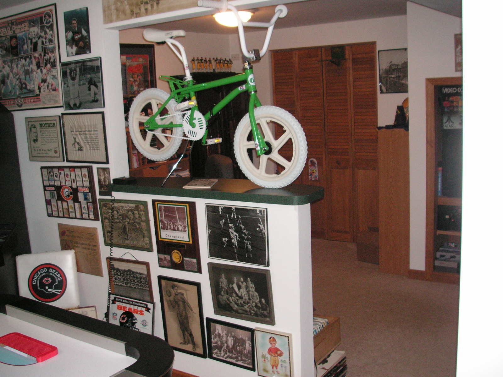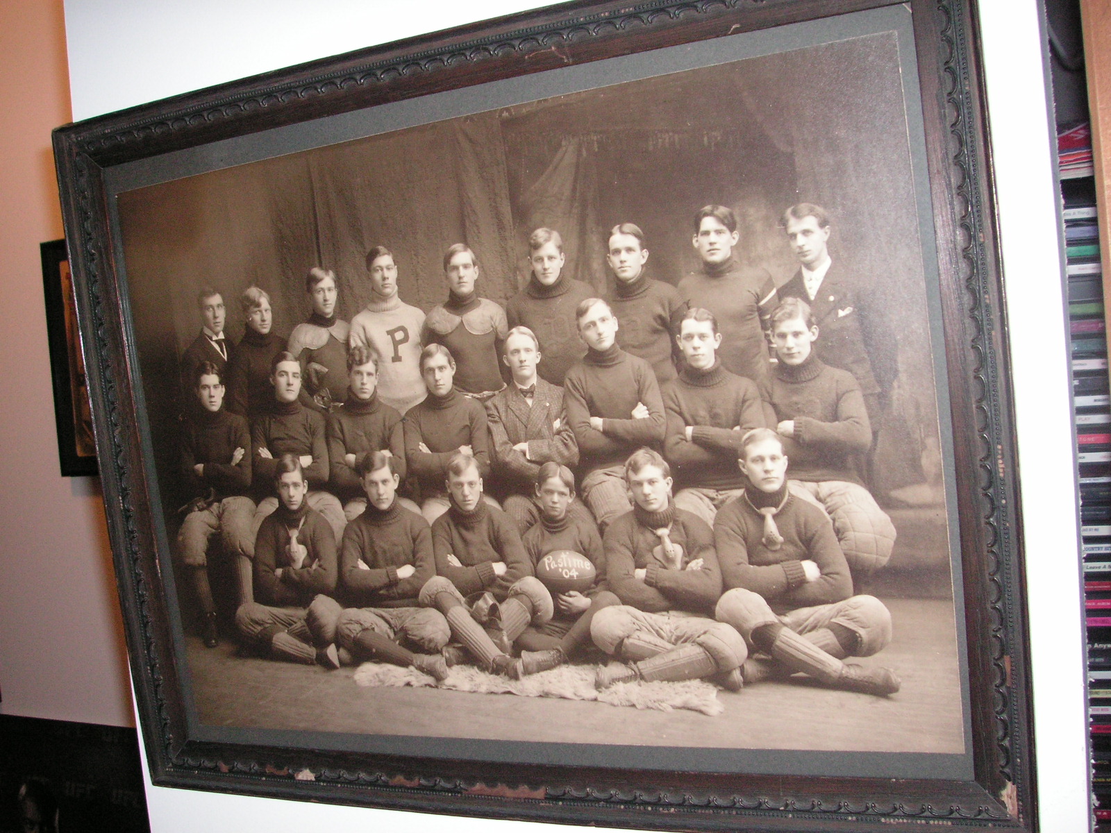 "I've been collecting vintage football items for about 13 years. I started by just wanting 1 leather football helmet. Loving the game of football so much as a player and coach, I was intrigued with the roots of the game. I searched every antique shop I came to with no luck for over a year. My parents found 2 old 1940's leather helmets at an antique shop in Wisconsin and bought them for me for Christmas 13 years ago and that was the start of my obsession. I enjoy having a nice assortment of items that span the decades the game has been played. I often wish I could go back and talk to the men who used to