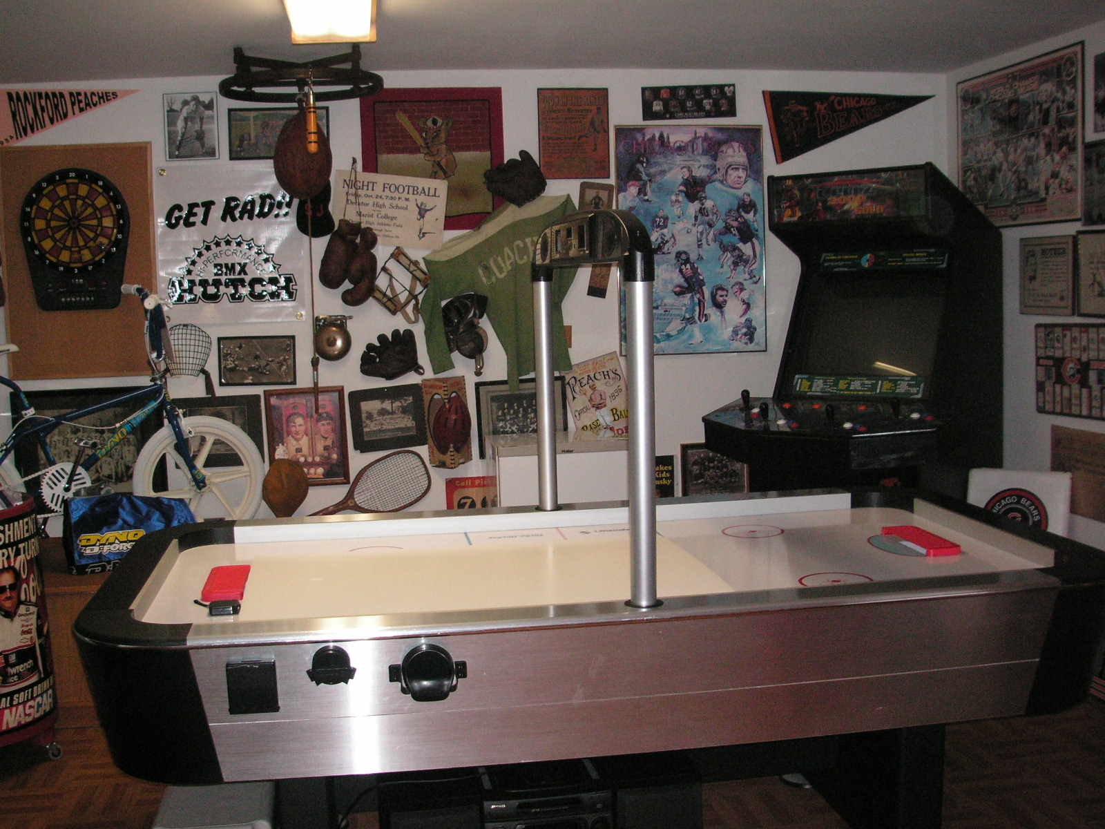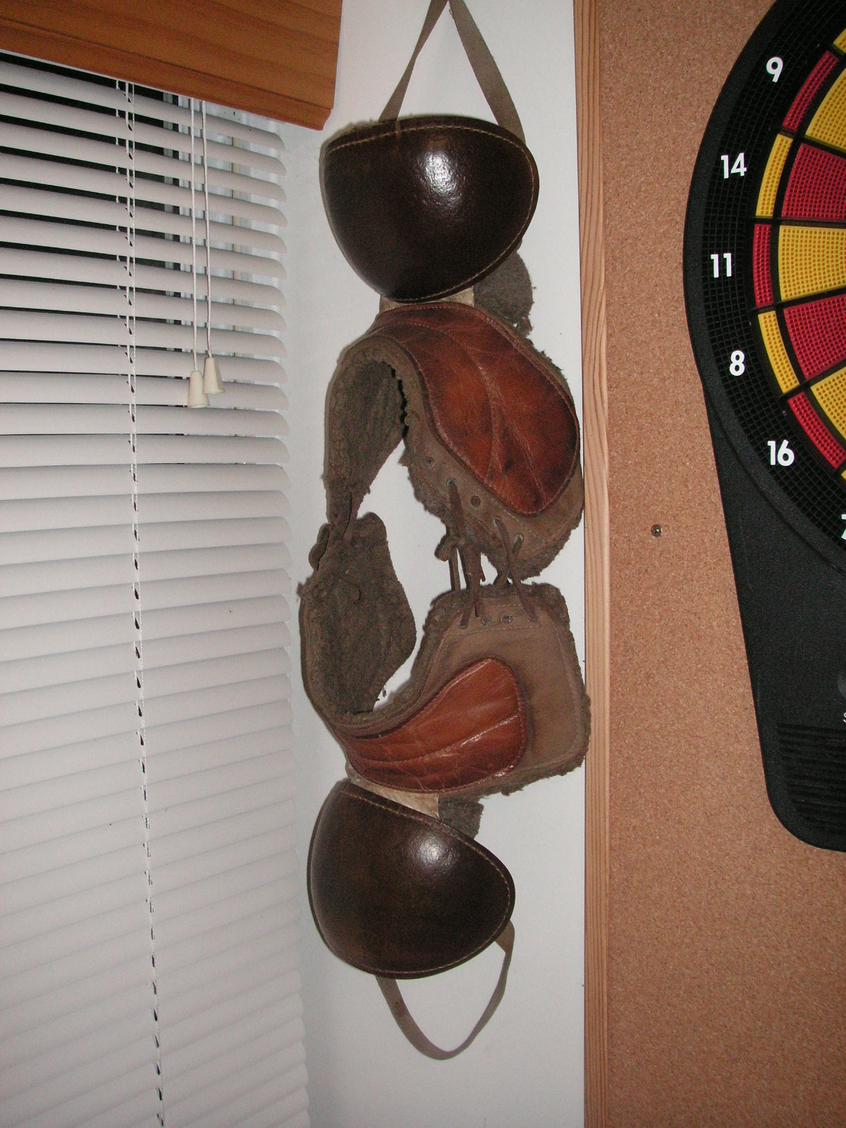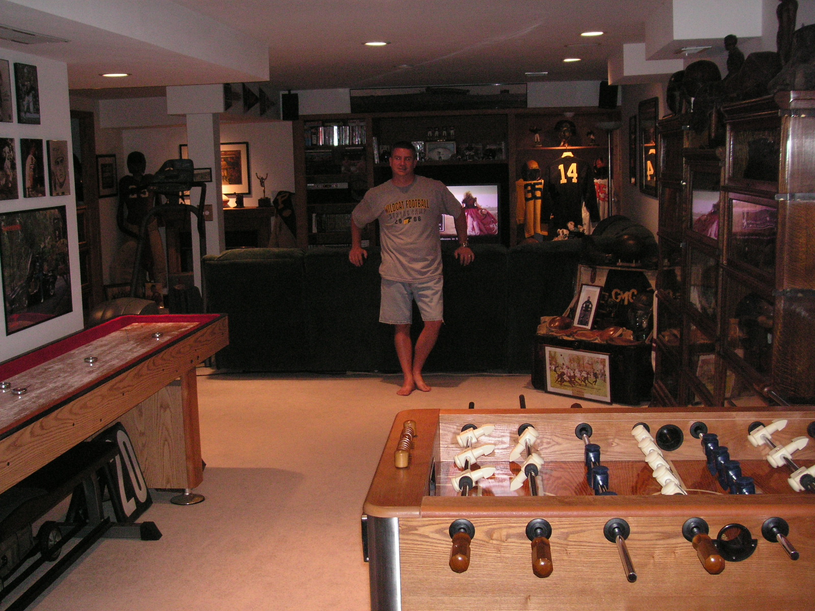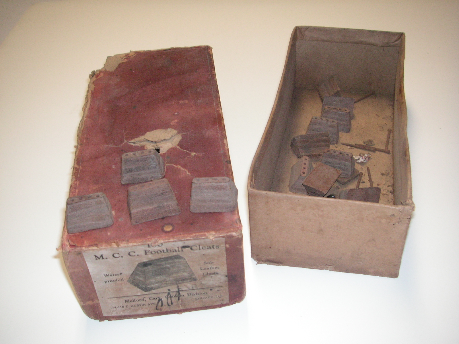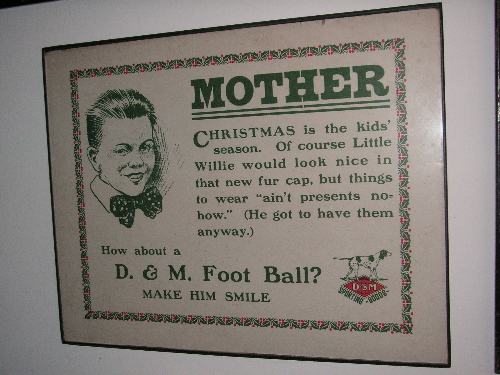 "I've been collecting vintage football items for about 13 years. I started by just wanting 1 leather football helmet. Loving the game of football so much as a player and coach, I was intrigued with the roots of the game. I searched every antique shop I came to with no luck for over a year. My parents found 2 old 1940's leather helmets at an antique shop in Wisconsin and bought them for me for Christmas 13 years ago and that was the start of my obsession. I enjoy having a nice assortment of items that span the decades the game has been played. I often wish I could go back and talk to the men who used to