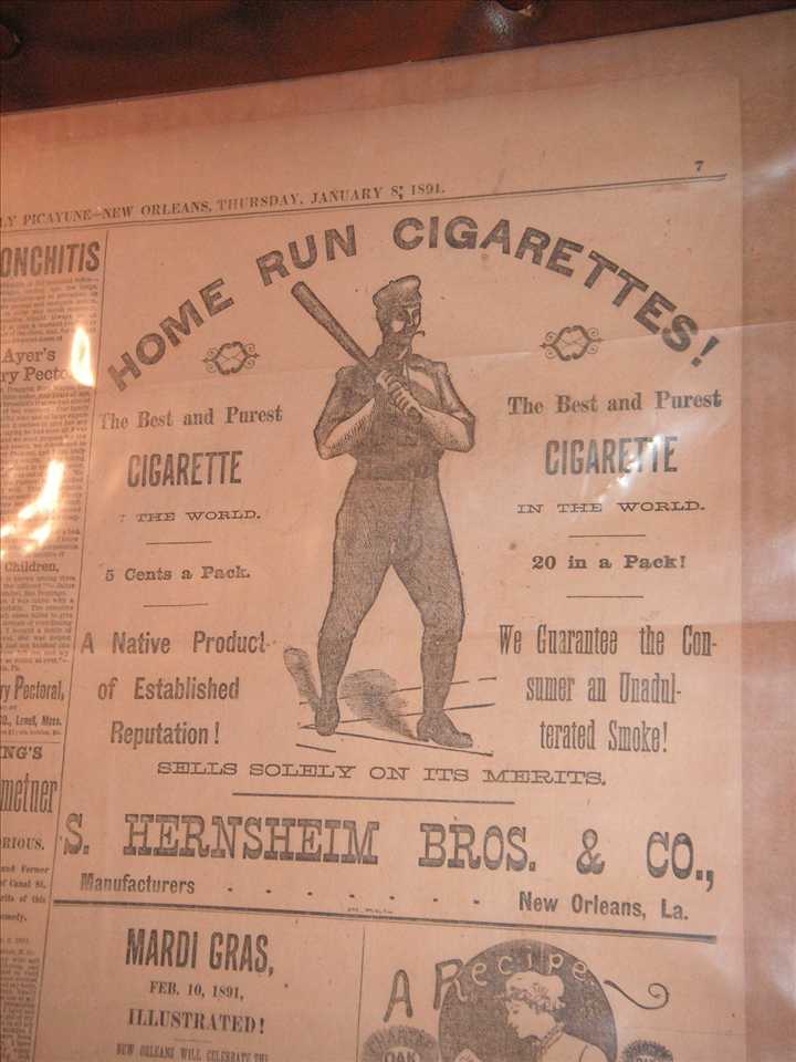 1891 The Daily Picayune-New Orleans. It had an advertisement for Home Run Cigarettes.