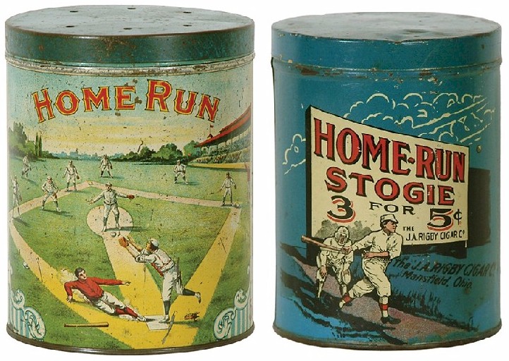 Home Run Cigars tin, and Home Run Stogies tin courtesy