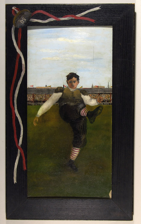 c1905-10 Folk art football painting, 24" x 12", Oil on board,
