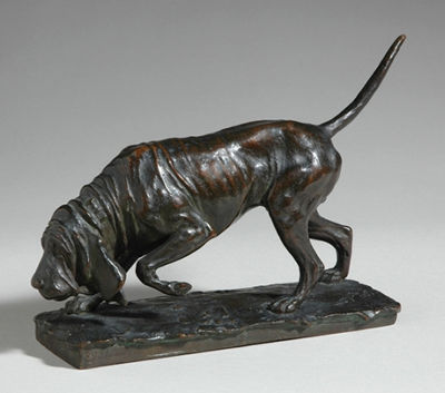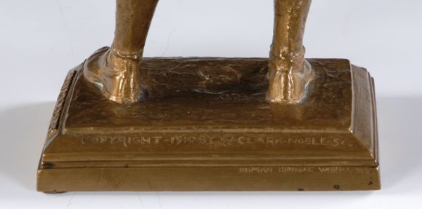 Antique American sports statues may be the hardest thing to collect, so little was produced. It happens to be, probably my favorite collecting genera, so when I come across a work I've never seen, it's exciting. But when it's by a major American sculptor like this one by William Clark Noble it's really exciting. Up till I opened the HoundStatueNoble.jpg (20154 bytes)Legendary catalog I'd never seen or heard of it. I'm not all that familiar with his work, but Noble is within the circle of major American sculptors from the Beaux-Arts/late 19th century era.