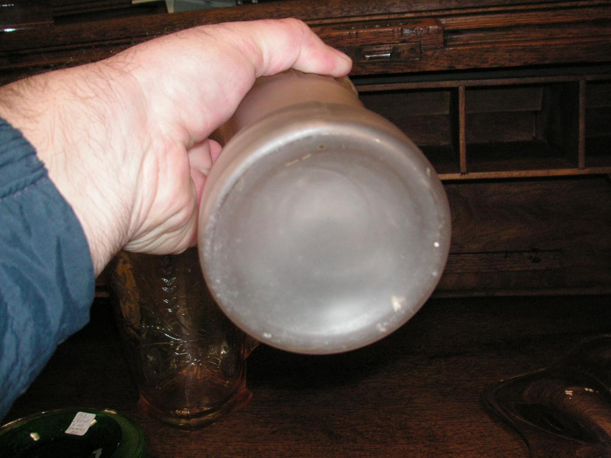 You must realize that Cyrus Noble, patina and glass making are all only partly connected though. The frosting shouldn't be confused with patina if that's what it is. Without actually holding it it's difficult for me to say of it's acid wash, powder blast or naturally occurring. Cyrus Noble in the earliest days probably didn't use glass and the commemoratives most likely didn't start until the time Jim Beam and others did, say 50's and 60's for the most part.